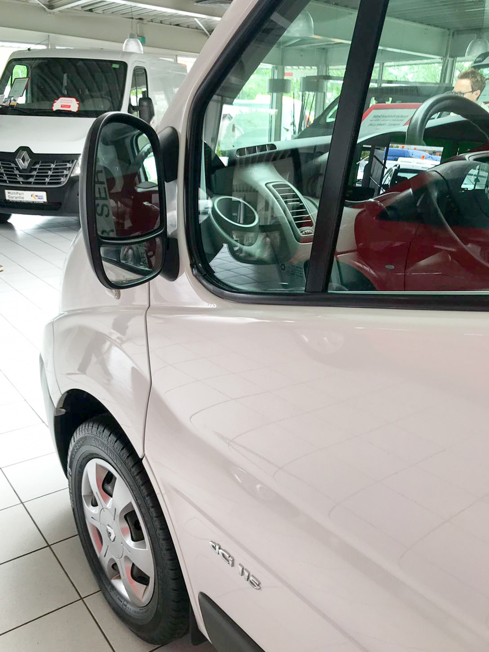 Das Schubladenelement wird auf der Linken Seite hinter dem Fahrersitz gebaut. Wie auch die Schränke verwende ich Birke Multiplex. Als Griff kommen wieder Lederband und Druckknopf zum Einsatz.